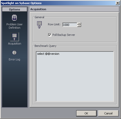 To set the maximum number of rows of data that will be returned for a query, select View | Options | Spotlight® on SAP ASE | Acquisition.