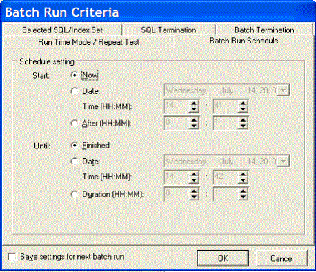 Tip: To save all settings on the Batch Run Criteria dialog for subsequent batch runs, select Save setting for the next batch run.