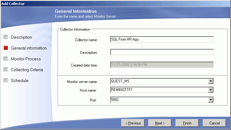 SQL Collector for Monitor Server > Add or Modify a Collector > General Information