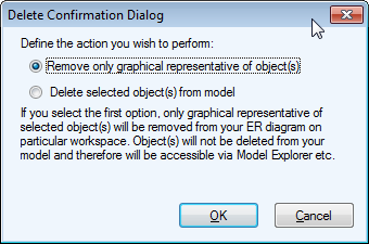 Whenever you press Delete or SHIFT+Delete in your ER diagram, the Delete Confirmation Dialog will pop up and you will be able to select what action you want to perform in particular case.