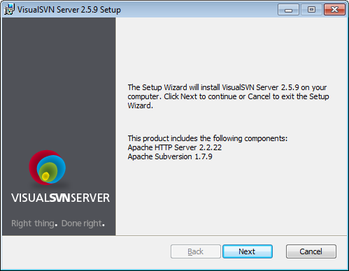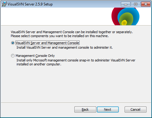 1. Download your preferred installation package. Here, the VisualSVN is the preferred package because it contains Server, Management Console and svn.exe.