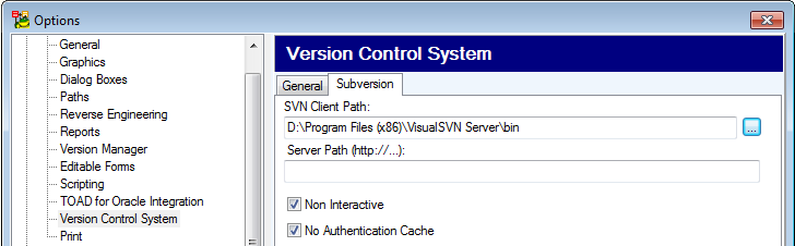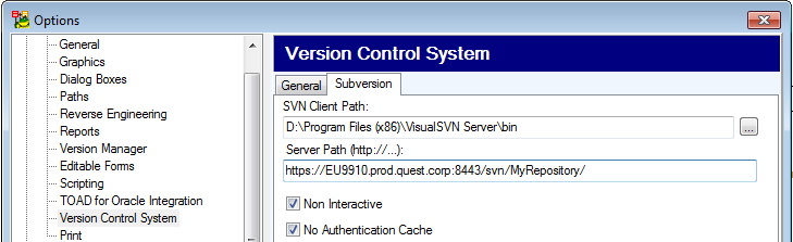 Toad Data Modeler offers you integration with a third party version control system - Apache™ Subversion®.