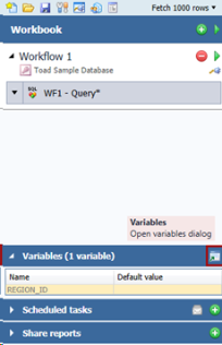Workbook | The Variables icon is present in the Query Builder or Editor tab in Toad Workbook when the .twf file is opened through Toad Data Point UI | QAT-21244 |