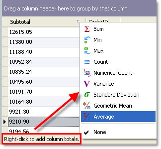 Tip: If you have grouped columns using the Grouping panel (Show | Grouping Panel), you can also add a subtotal value to grouped records, as shown in the following example: