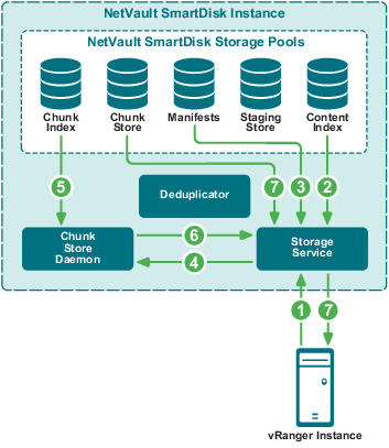 After the user initiates a backup job targeted to the NetVault SmartDisk repository, vRanger streams data on the user-defined port to the Storage Service.