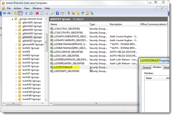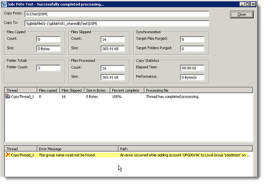 The groups were being created in AD on the Secure Copy “Log-on” DC but the group memberships were being updated on a different DC that had not yet received the replication of new group. This issue can occur if there are DNS issues in an environment.