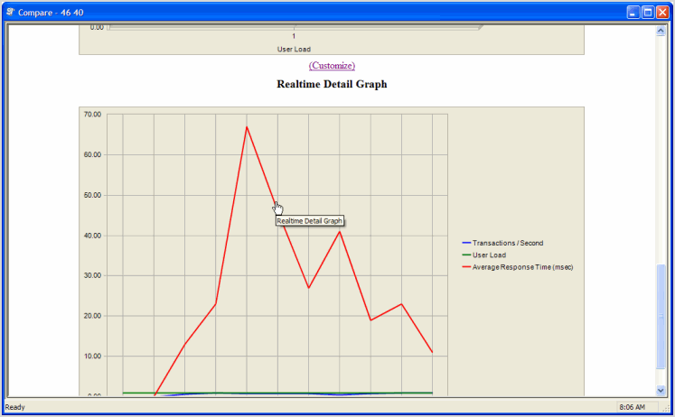 The Realtime Detail graph allows you to view what actually happened during the running of a load test. This allows you to view the actual timing events. From the Realtime Detail graph you can view:
