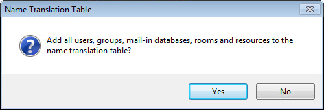 A confirmation box appears. Click Yes to confirm that all entries will be added to the Name Translation Table: