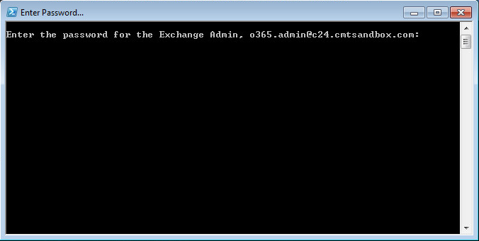 Once the Country Code is set, select one or more entries and then click the Enable/ Activate Mailbox button to enable a Mailbox; enter your password in the Begin Activation of Office 365 Users command line window: