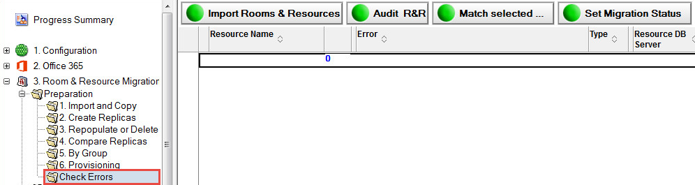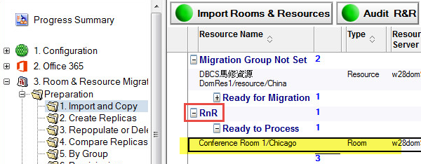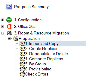 1. Expand the Rooms & Resources Migration | Preparation | Import and Copy view in the Navigation Pane: