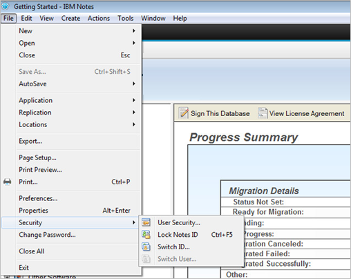 Check the Notes ID that is currently logged in for access to the Migrator for Notes application. This can be accessed through the Notes client using File | Security | User Security:
