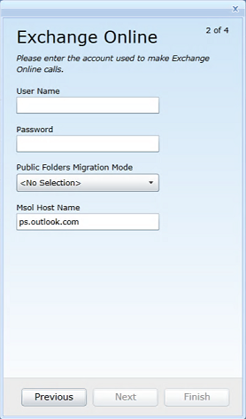 Enter the User Name and Password for the account Migrator Pro for Exchange should use for program calls to Exchange Online.