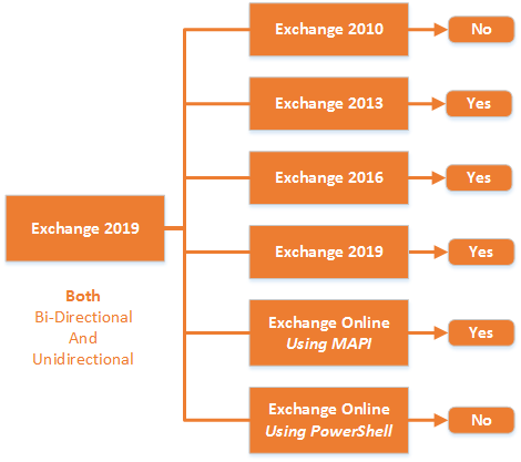 The current release of Migrator Pro for Exchange supports mailbox migration for these source/target scenarios:
