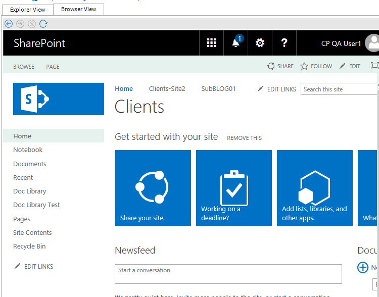 The Browser View displays a view of the content as it would be seen in a web browser for a selected SharePoint node. It is also available if selecting a single item in the Items View. When selected, this tab will display a fully functioning web browser view of the selected content. You can use this Browser View to navigate or work with their content, the same way they would through a normal web browser window.