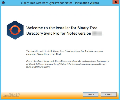 1. Double-click the executable to begin installing Directory Sync Pro for Notes. The Welcome screen appears. Click Next to continue.