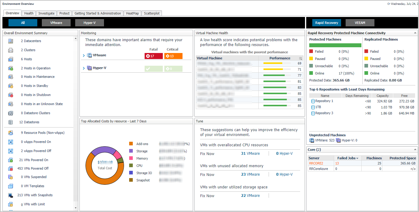 Rapid Recovery/VEEAM. Provides an overview about the protected and unprotected virtual machines in the monitored environment. | |