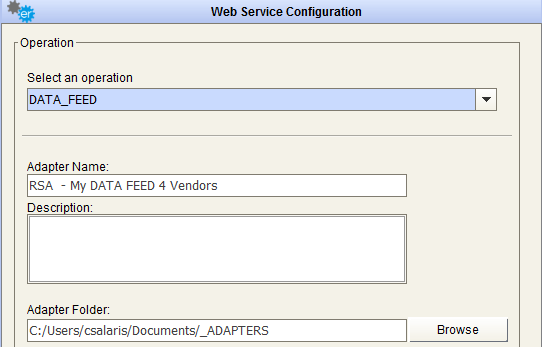 After selecting the desired operation, it is required to enter a name and a description for the adapter in the appropriate fields; the user must browse the file system for the adapter folder (used to save intermediate and result file for adapter execution).