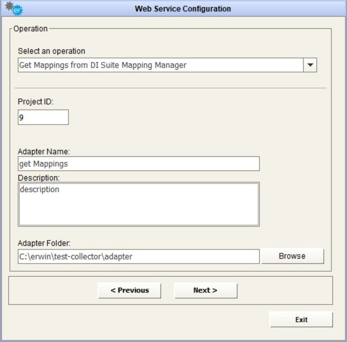 Click the button to proceed to the next step, and select the operation “Get Mappings from DI Suite Mapping Manager”.