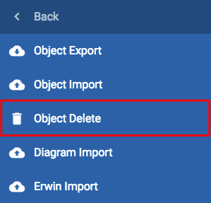 Deleting a selection of objects can now be performed in the User Menu > Bulk Actions > Object Delete