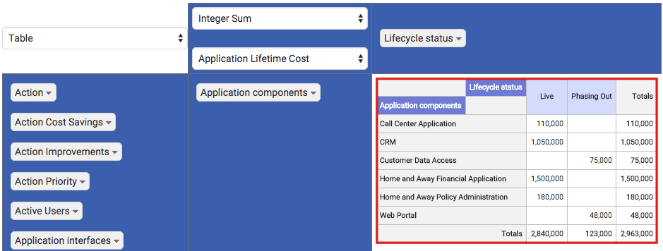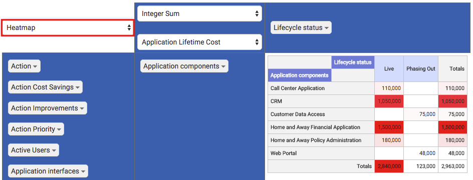 You have very quickly created an application landscape on lifetime costs by lifecycle status.