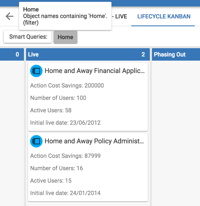 View the LIFECYCLE KANBAN visualization, and click the Home Smart Query button.