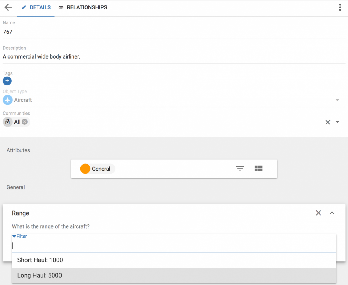 The rule associated with the Range attribute will ensure that users can only enter either Long Haul or Short Haul.