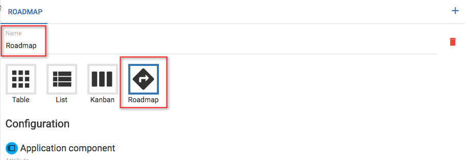 In the Configuration section of the visualization, the object types that can be used in the roadmap are presented separately, and different date attributes can be selected for each in the Attribute field. This is the field that will provide the timeline information to the roadmap