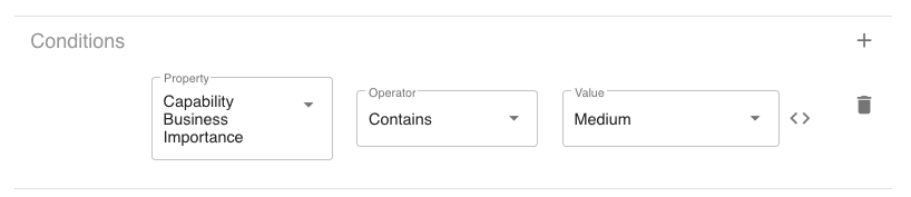 4. If you wish, you can also set Conditions on your properties. For example for Capability: Business Importance, only return those that are Medium