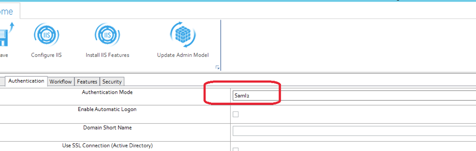 a.Select Authentication mode to “Saml2”