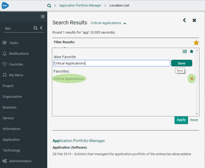 When viewing the filter options you will see a star symbol. Pressing this star will open the favorites options.