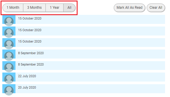 Click 1 Month3 Months1 Year or All  to specify the duration of notifications displayed.