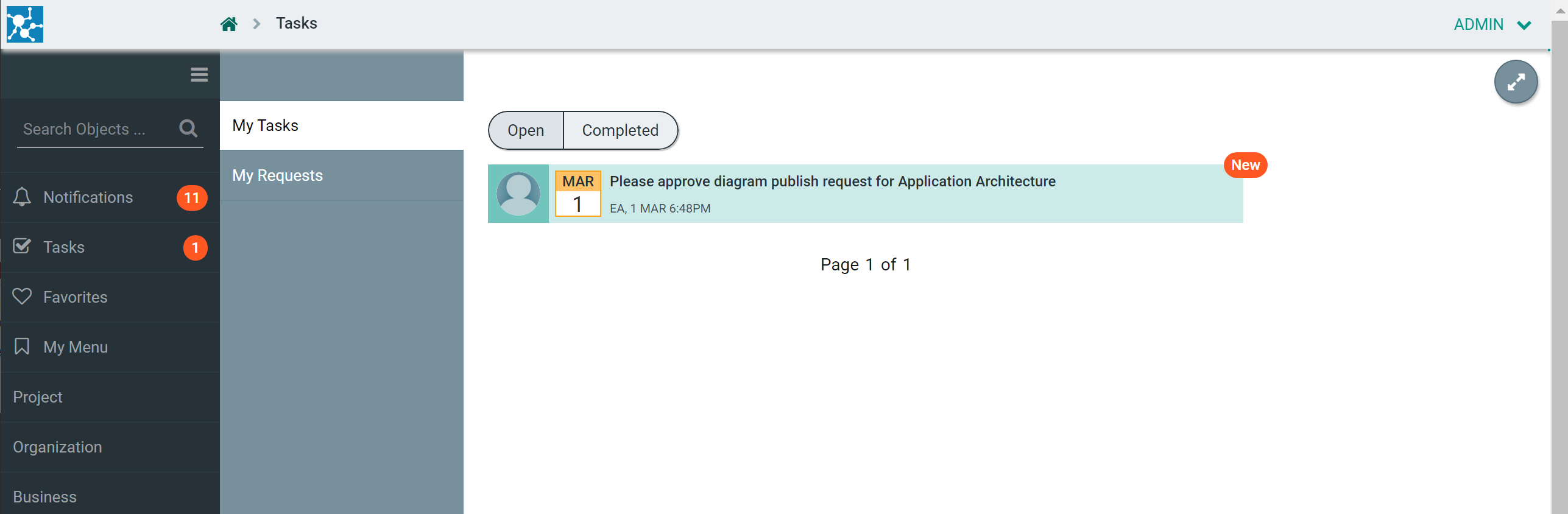 This feature is intended to enable a broader adoption of modeling in an organization, whilst maintaining control over publication. Both modelers and reviewers are notified of updates and reviews through emails and the task UI, and the workflow pattern mirrors that of object approvals.