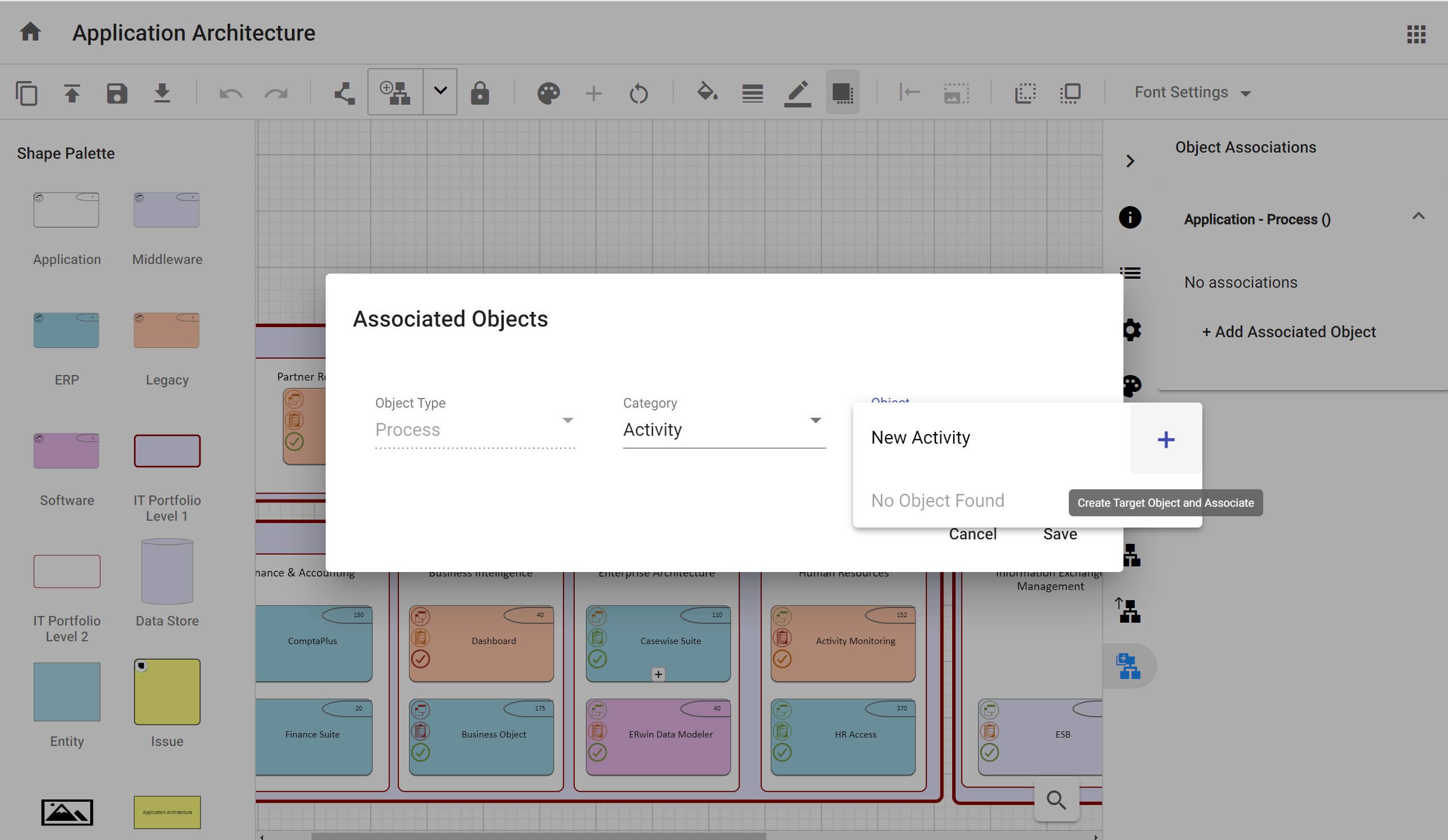 This latest feature takes it one step further, allowing the modeler to also create new non-diagrammed objects, and associate them. These objects remain un-published until the diagram itself is published, allowing reviews to also incorporate the creation and approval of these new objects.
