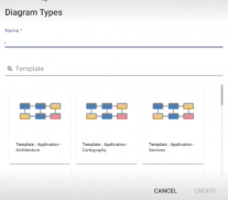 A new diagram can be created by choosing from the available templates in Web Modeler.