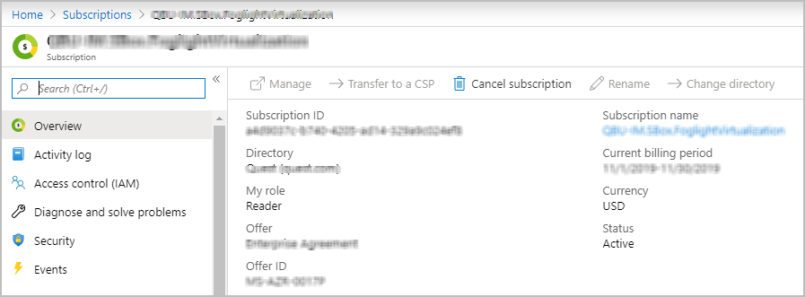 In the Subscriptions view, click the subscription that you want to monitor, then the Subscriptions details view opens.