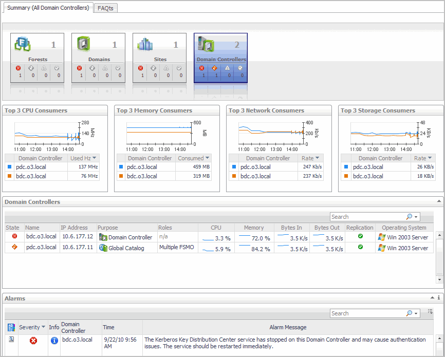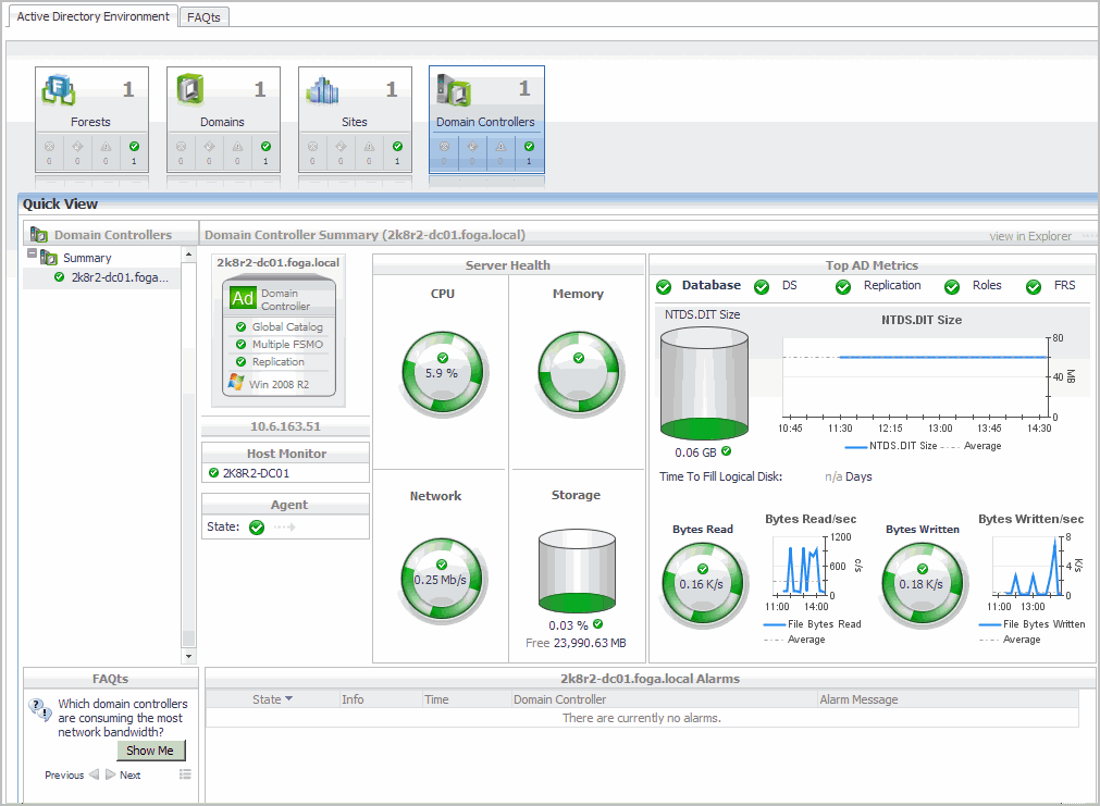 The following views are available to monitor the health of your Active Directory domain controllers: