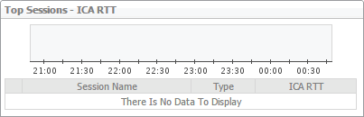 Identifies the ICA sessions with the highest round-trip time (RTT). Each line in the table shows the session name, its type (Desktop or Application) and its ICA RTT.