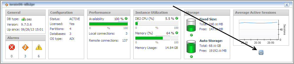 Clicking the Overview icon in the lower right corner takes you to the Instance home page. |