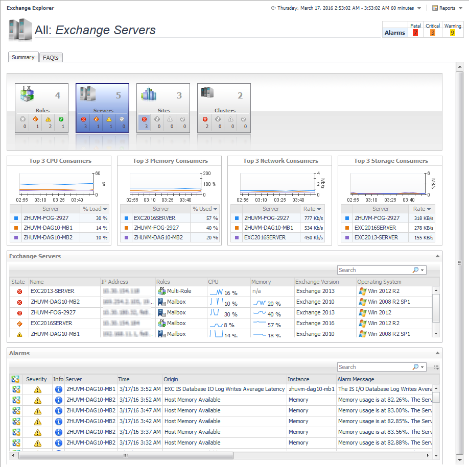 NOTE: You can also click the Explorer link on the Exchange Server Environment Summary view to display this view. |