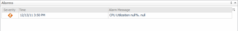 This view displays a list of alarms generated against the objects or group of objects selected in the Quick-View. Use this view to quickly identify any potential problems related to a specific object.