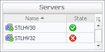 Server. Displays the Servers dwell, showing the names and states of the servers that belong to the selected cluster.