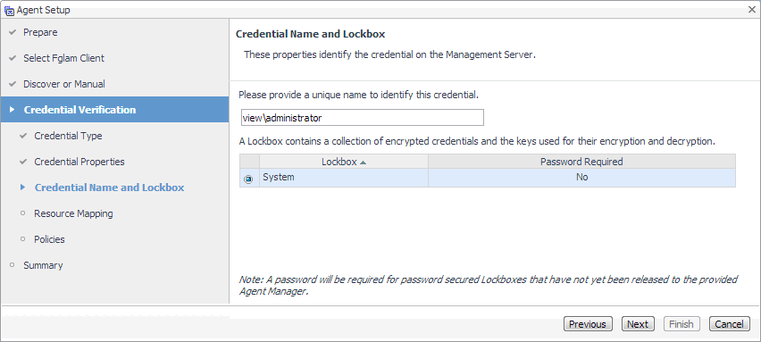 The Credential Name and Lockbox page appears.