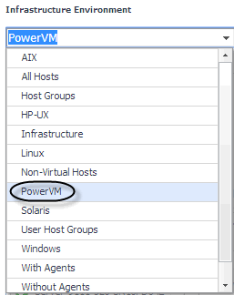 A typical PowerVM® environment includes one or more HMC instances, managed PowerVM servers, PowerVM partitions, and PowerVM Virtual I/O server (VIOS) instances. You can view the state of these components on the Infrastructure Environment dashboard when you select the PowerVM service.