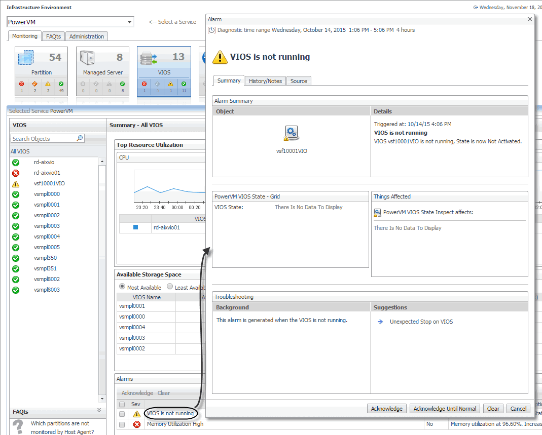 Your monitored PowerVM® servers are managed by the one or a pair of HMCs (Hardware Management Console). You can monitor the performance of HMC instances when you select the HMC tile on the Infrastructure Environment dashboard.