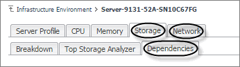 On the Detail view appearing in the display area, open the Storage or Network tab, and click Dependency. |