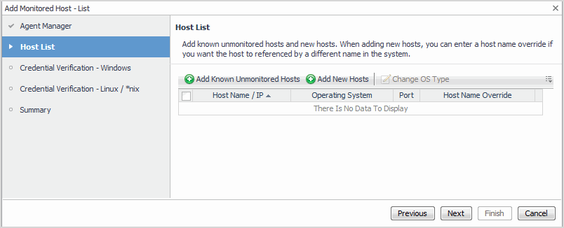 The Add Monitored Host - List wizard allows you to start monitoring multiple hosts in your infrastructure environment.