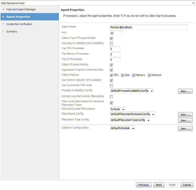 In the Add Monitored Host wizard, on the Host and Agent Manager page, specify the host that you want to monitor. |