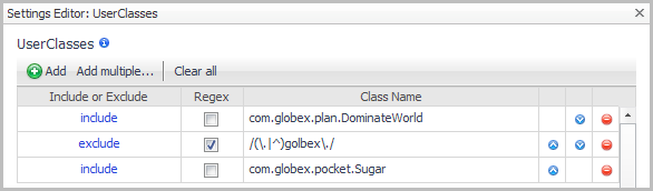 In the Settings Editor dialog box, click OK to save your changes to the user class instrumentation. |