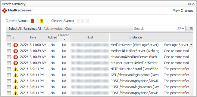 ). Click the status icon for an affected component (system, server, or application) to obtain information about the source. For more information, see Reviewing the health of your systems.