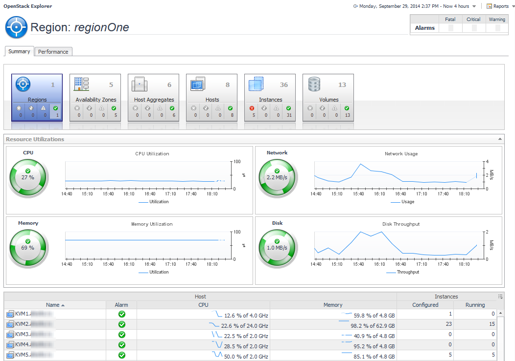 This tab is available in the OpenStack Explorer. To find it, open the OpenStack Explorer and on the Topology tab, that appears on the navigation panel, select any configured object of type Region, Availability Zone, Host Aggregate, Host, Instance, or Volume. In the OpenStack Explorer, open the Performance tab.